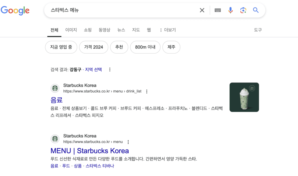 예시 2: “스타벅스 메뉴”