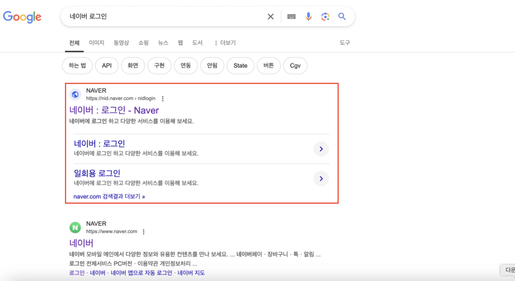 예시 1: “네이버 로그인”